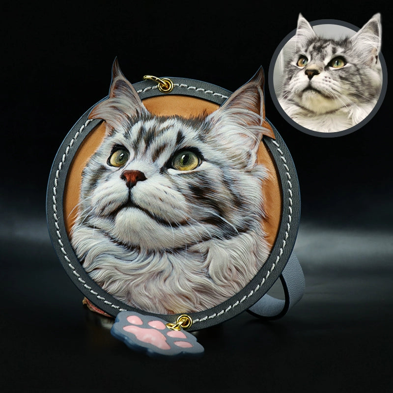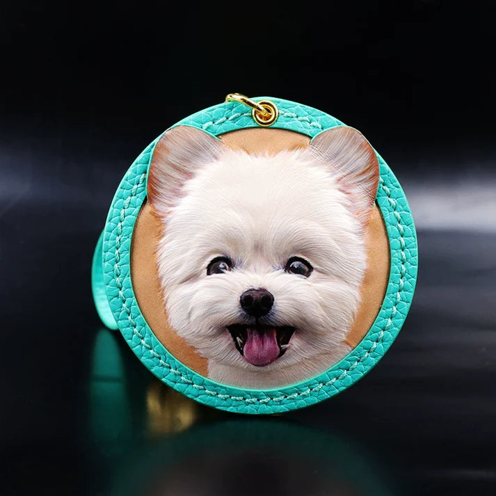 Pet leather carving hangtag is the perfect answer! Each hangtag is carefully carved by hand by a leather carving master with more than ten years of experience. From the initial design drawing, to the meticulous carving, coloring, to the final sewing, edge sealing and polishing, it takes more than 20 hours. Just to present every cute detail and every soft hair of the baby vividly. Whether it is hung on a bag or as a keychain, it can keep your pet company at all times.